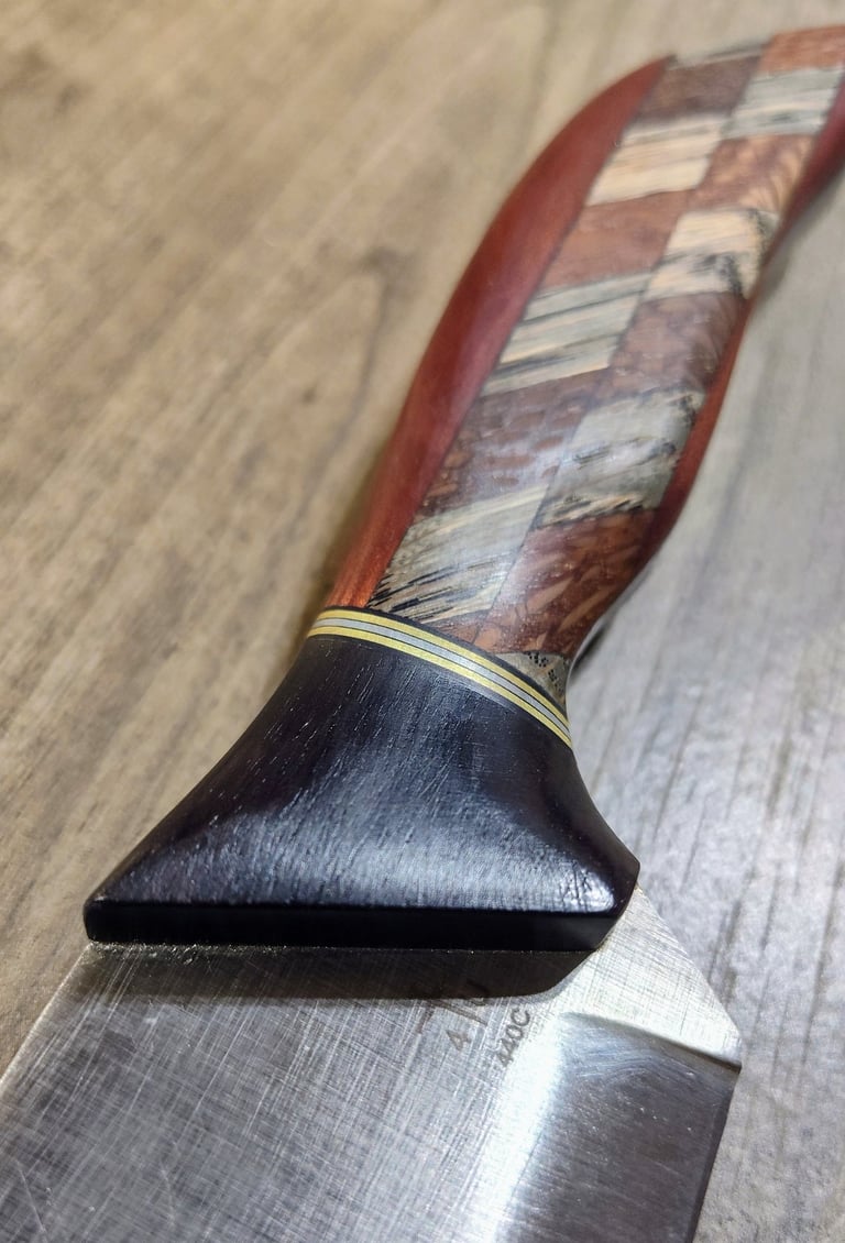 These premium artisan knives feature concealed steel pins within the handle, ensuring the seamless beauty of the wooden pattern remains undisturbed.